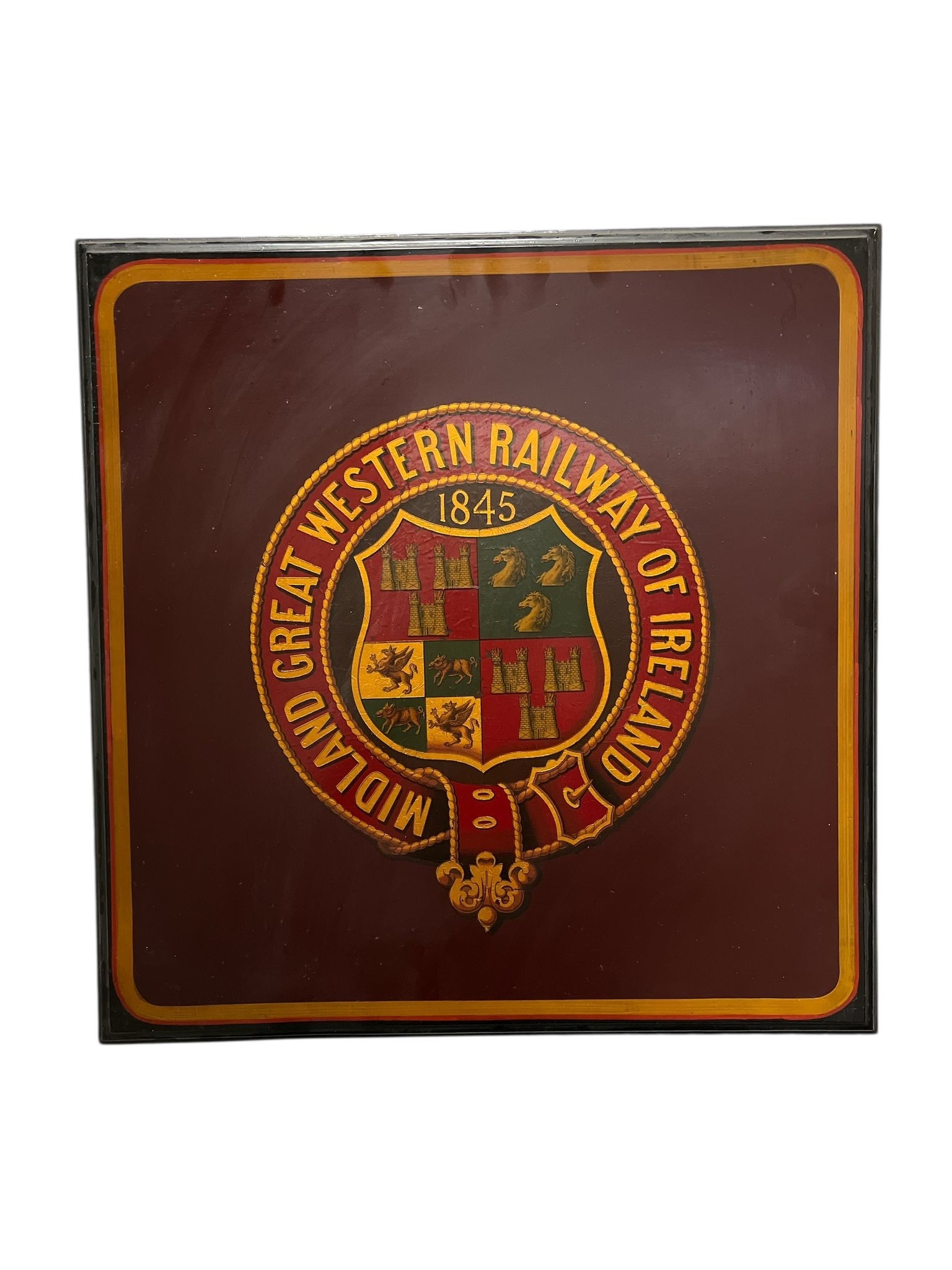 MIDLAND GREAT WESTERN RAILWAY OF IRELAND COAT OF ARMS on board 45cm (h) x 45cm (w)