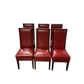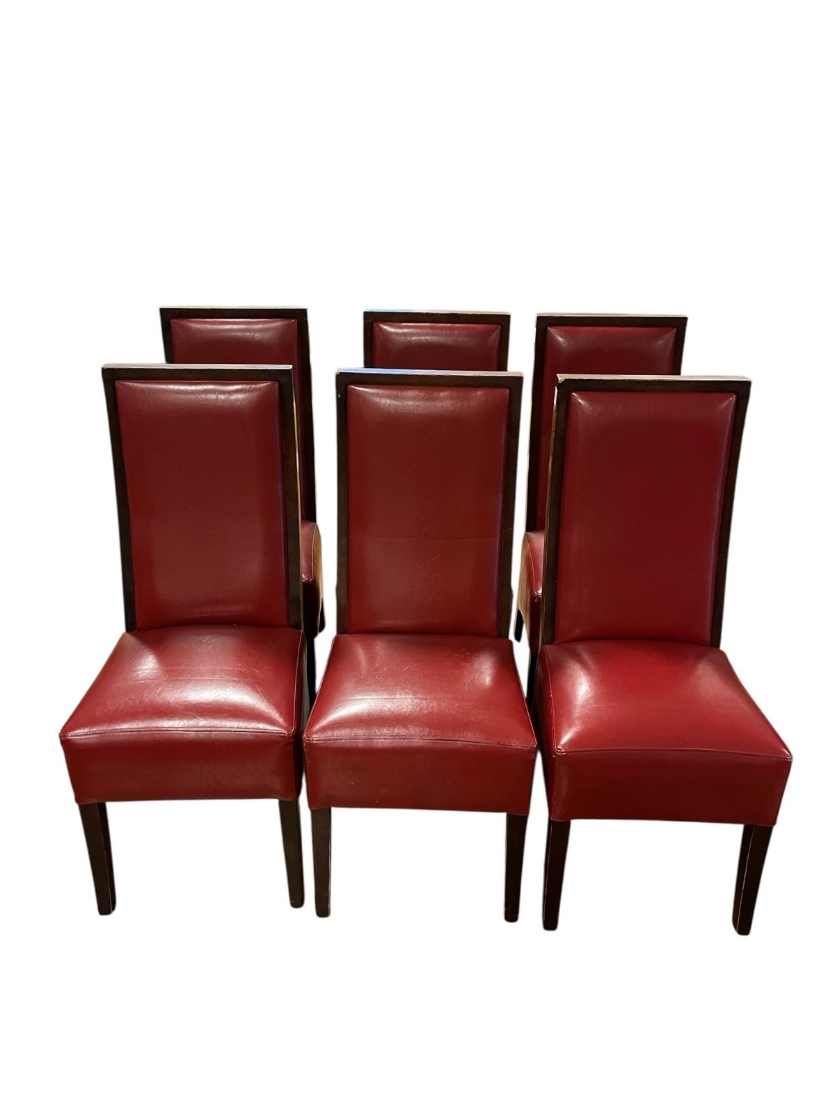 A SET OF SIX ART DECO STYLE STAINED WOOD AND UPHOLSTERED DINING CHAIRS each with a rectangular upholstered back and seat on moulded legs