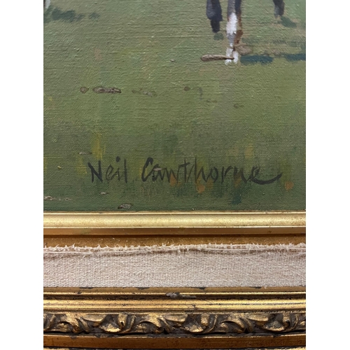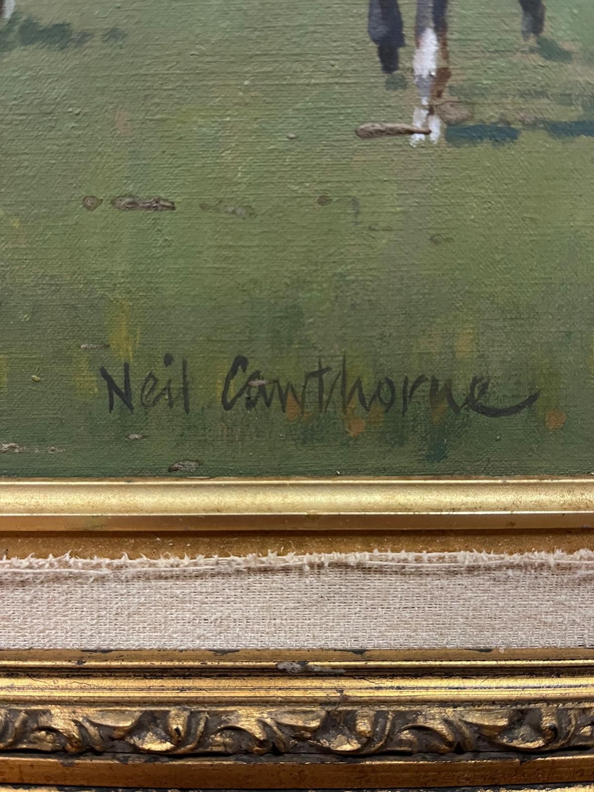 NEIL CAWTHORNE (1936-2002)'At The Start'Oil on canvasSigned lower right 46cm (h) x 63.5cm (w)