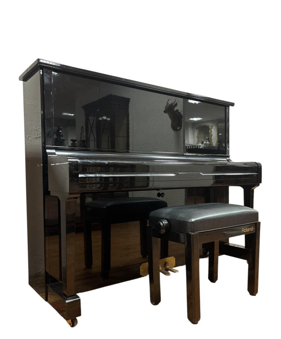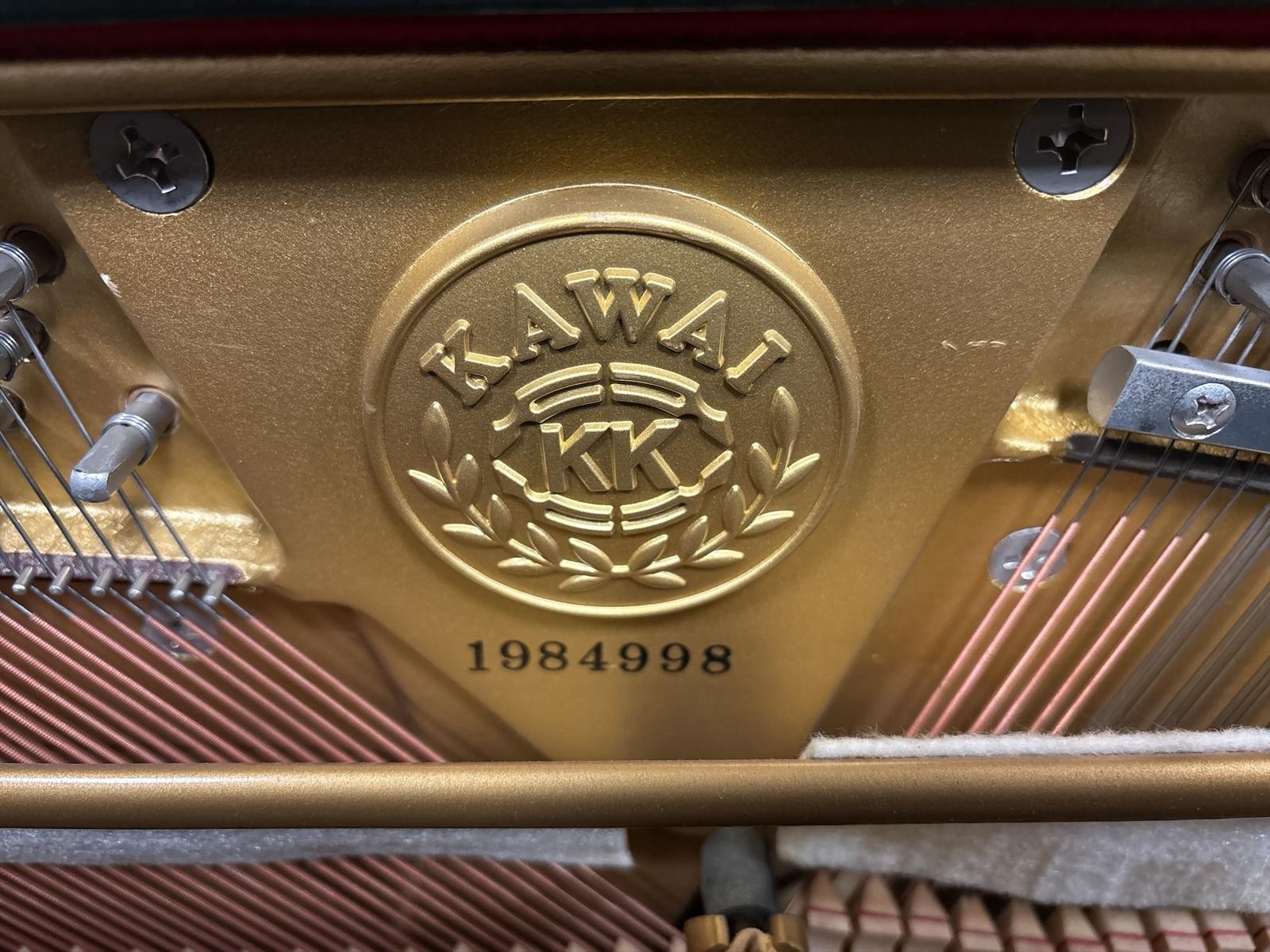 A KAWAI BLACK LACQUERED CASED UPRIGHT PIANO steel frame, over string and under damper Serial No. 1984998 125cm (h) x 152cm (w) x 59cm (d) together with AN ADJUSTABLE STOOL en suite