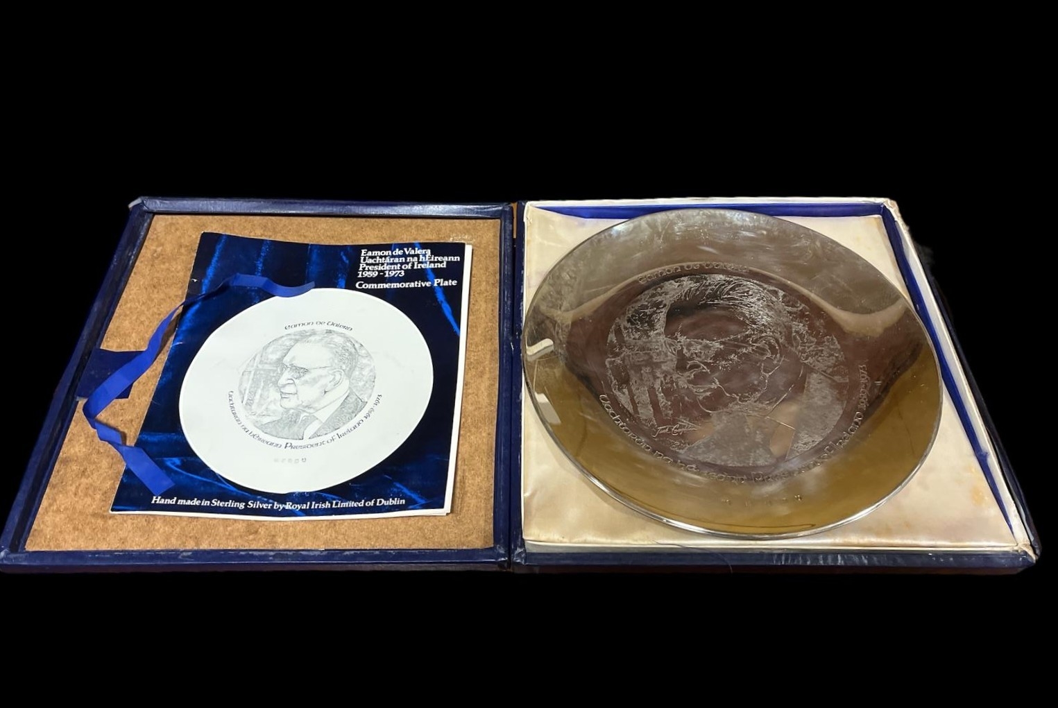ÉAMON DE VALERA 1959-1973 A commemorative silver plate Dublin 1973 18 troy oz in original presentation box (AF)