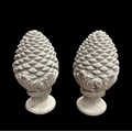 A PAIR OF COMPOSITION FIGURES each modelled as a pineapple raised on a circular spreading foot 30cm (h)